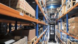Mittels im Boden installierter RFID-Tags erkennt die Technologie die Störkontur der Querstrebe frühzeitig und senkt den Mast entsprechend ab, sodass die Kante problemlos unterfahren werden kann. Eine ebenso durchdachte wie effektive Lösung – die auch bei den Staplerfahrern am Standort gut ankommt. „Wir konzentrieren uns komplett auf unsere Arbeit, und das System passt immer nach oben auf“, berichtet Peter Dettke aus der Lagerlogistik. Zusätzlich sind die beiden angeschafften K-Geräte mit speziellen Neigeschranken ausgerüstet: Lehnt sich der Bediener daran, neigen sich die Bauteile um zehn Zentimeter nach außen, so dass der Mitarbeiter besser an die zu pickende Ware gelangt. „Daran sieht man gut, welche Vorteile es hat, das komplette Package von einem Anbieter zu bekommen“, bilanziert Markus Köhler, Director Aftermarket CE Europe.